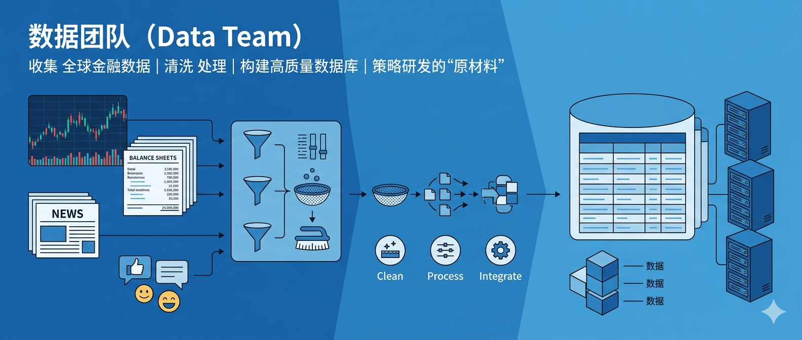 负责收集、清洗和处理全球各类金融数据(如股价、财报、新闻、社交媒体情绪等),构建数据库作为策略研发的“原材料”。
